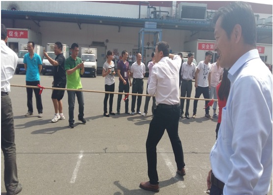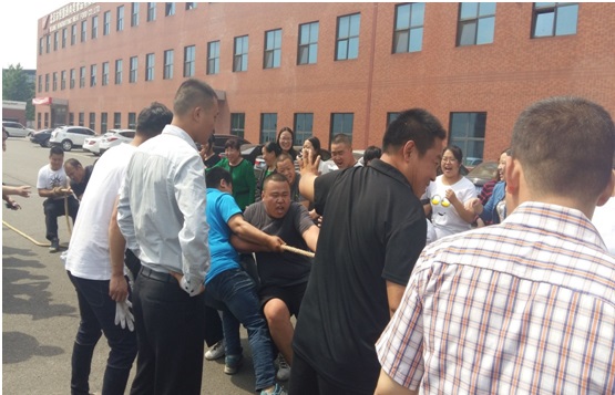 下午在恒慧漂亮的辦公樓前的寬闊場地上,一場別開生面的拔河比賽吸引了恒慧所有人的參與,迎來了令人期待的兄弟公司拔河比賽,由京科倫張繼龍總經(jīng)理和恒慧通經(jīng)理?xiàng)罱ㄔO(shè),銷售副總李新主持。要求每隊(duì)隊(duì)員均為十人,真所謂是千斤對千斤啊。經(jīng)過抽簽,肉食和京科倫依次進(jìn)行內(nèi)部選拔賽,肉食銷售隊(duì)隊(duì)員一鼓作氣瞬間進(jìn)入冠亞爭奪賽,京科倫內(nèi)勤與生產(chǎn)隊(duì)在一番較量后,生產(chǎn)隊(duì)決出。接下來就是精彩紛呈的決賽了,參賽隊(duì)員更是活力四射,旁邊站滿了吶喊助威的觀眾。“加油!加油!”,吶喊聲此起彼伏,現(xiàn)場十分熱鬧。隊(duì)員們卯足了勁向后挺。身在助威聲、吶喊聲融成的熱情海洋里,恒慧人們的熱情推向了高潮、經(jīng)過角逐,肉食銷售隊(duì)所向披靡,又一次取得勝利。同伴們都為其高呼,開心喜悅彌漫開來。