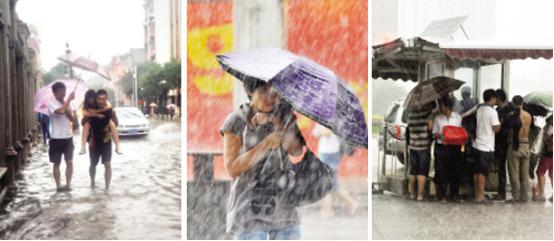 在這暴雨天,似乎傘都成了一種裝飾,并不能阻止暴雨淋濕行人的意圖。