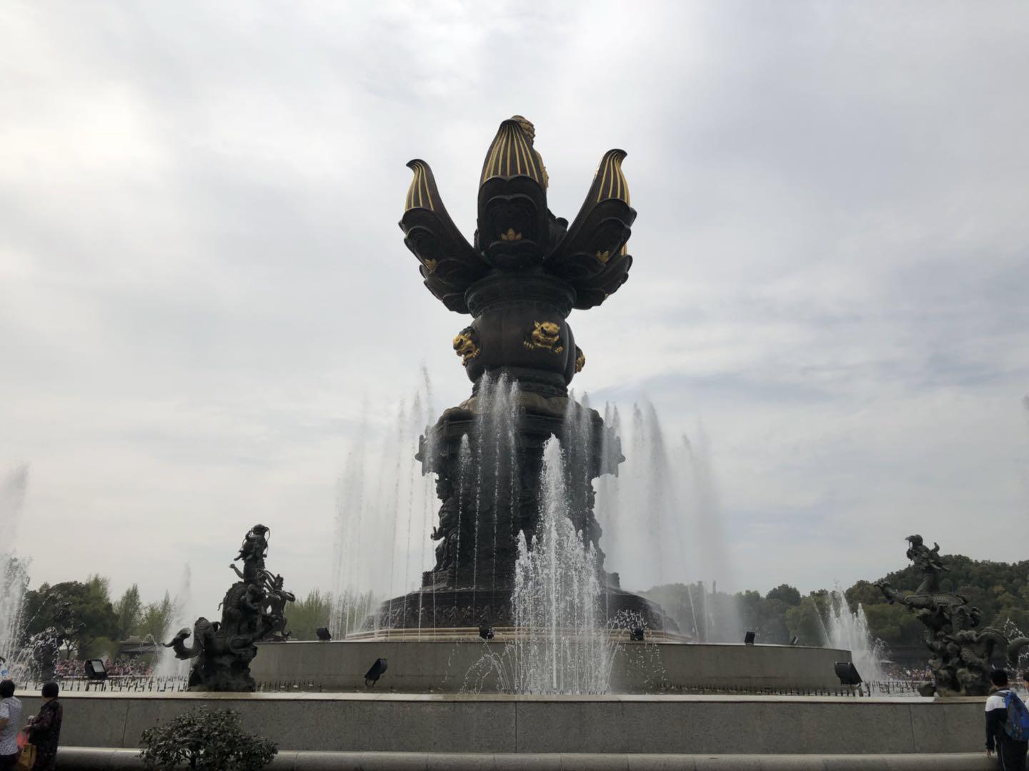 九龍灌?。焊鶕?jù)佛教典籍《本行經(jīng)》記載:佛祖釋迦牟尼一誕生就能說話會走路,他向東南西北四個方向各走了七步 ,每走一步,地上就開出一朵 蓮花。他一手指天,一手指地,說道:“天上天下,唯吾獨尊”,這時候花園里忽然出現(xiàn)了兩方池水,天空中出現(xiàn)九條巨龍,吐出水柱,為其沐浴凈身。當(dāng)《佛之誕》音樂奏響時,巨大的六片蓮花瓣徐徐綻開,一尊高達(dá)7.2米 全身鎏金的金身太子佛像,一手指天,一手指地,從蓮花中緩緩升起,這時, 九龍口中一齊噴射出數(shù)十米高的水柱,為太子佛像沐浴。頃刻間,廣場四方鼓樂齊鳴,噴泉百態(tài)千姿。太子佛像在巨幅水幕中順時針環(huán)繞一周,象征著“花開見佛”、“ 佛光普照”。隨著樂聲漸弱,蓮花花瓣包裹著太子佛像緩緩合攏。此時,噴泉周圍八組 鳳凰的口中會流出凈水,供大家用。大家知道嗎?這可不是一般的凈水哦,按照佛教的說法,這是“八定水”,即佛教“ 圣水”。您到了靈山一定要用瓶子將其帶回家,據(jù)說,用“八定水”沐浴或者拿它來供奉佛像,可以開智慧、護(hù)佑您和您的家人,給大家?guī)砑槠桨病?/p>