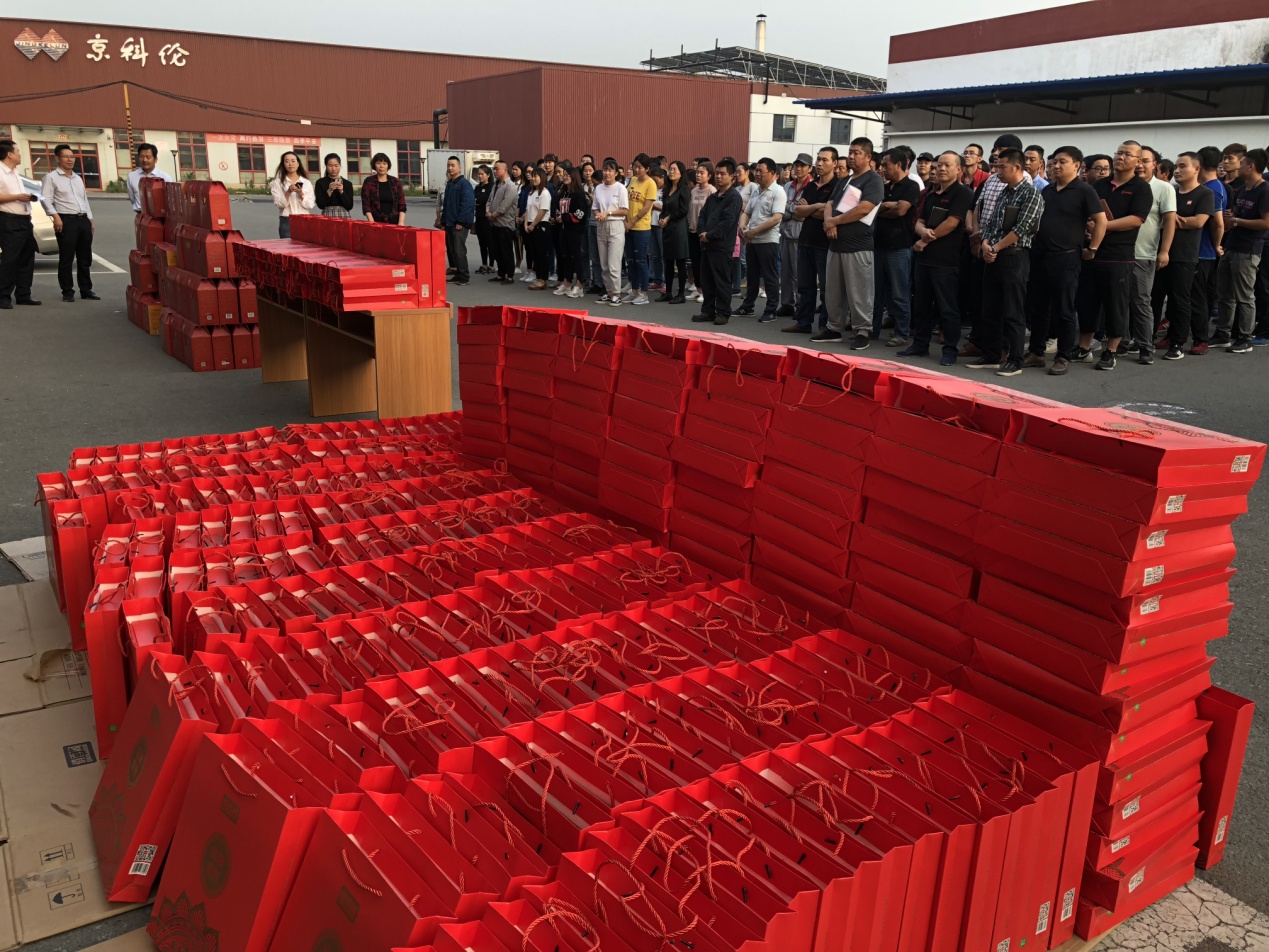 公司為感謝全體員工為公司的發(fā)展而不辭辛苦的工作,體現(xiàn)公司對廣大在崗員工的生活關(guān)懷,于2018年9月20日下午在辦公樓一樓統(tǒng)一發(fā)放中秋國慶雙節(jié)禮品。