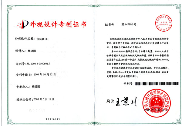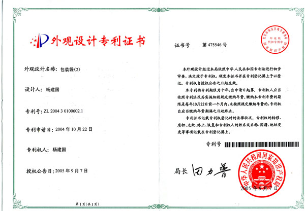 我公司北京烤鴨和老北京燒雞取得外觀設(shè)計(jì)專利證書