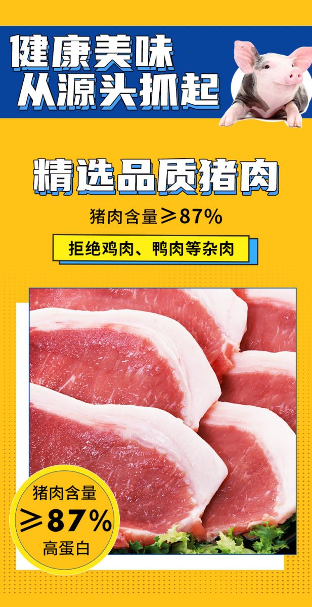 豬肉含量≥87%  無雜肉,配料干凈能看懂;