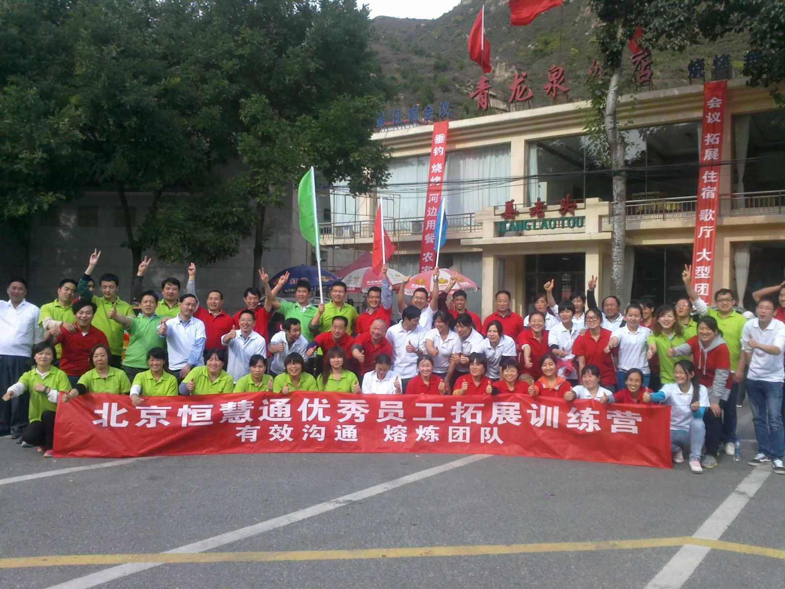 短短兩天的拓展訓(xùn)練,緊張緊湊,激烈熱烈,讓人生出無窮的回味......。分配完宿舍,禁不住層層山巒的誘惑,我們一路向前......夕陽的余暉把我們54人的大團隊聚到了“教室”里。“不要輕易說‘我認為’三個字,有多少人因為‘我認為’而耽誤多少工作,造成多少誤會......”,主管教練用這句話拉開了我們這次拓展訓(xùn)練的帷幕,并用游戲的模式打破人們對事情的一些常規(guī)認識和慣性思維,把恒慧通行政人事辦公室、財務(wù)室、生產(chǎn)部和后勤部融在了一起,相互信任的基礎(chǔ)由此而建立。到了晚上,伴隨著烤串冒著的縷縷香氣和著露天KTV飄飛的肆無忌憚的歌聲,讓我們對明天的活動充滿了自信和暢想。