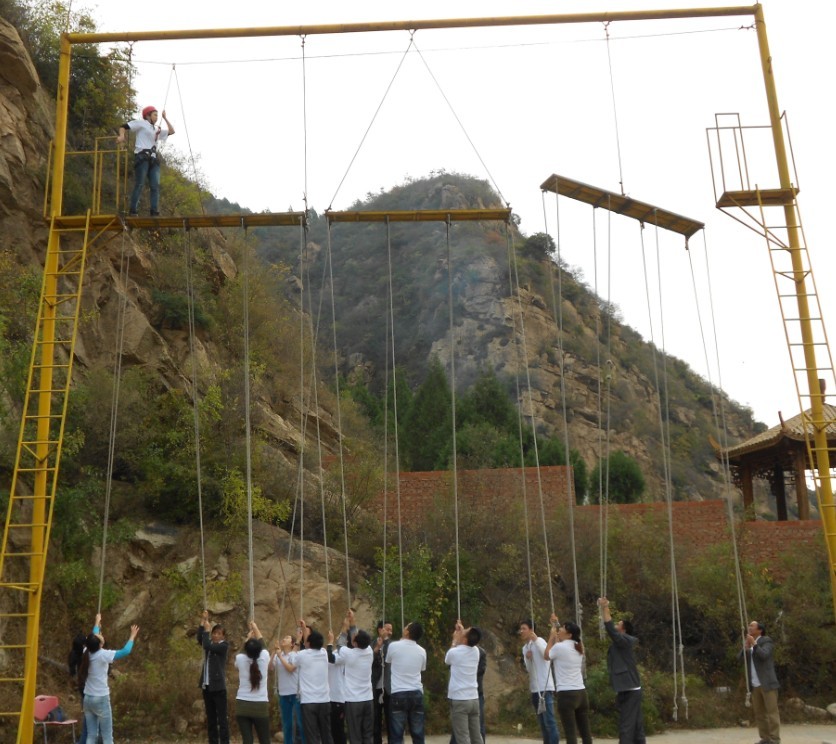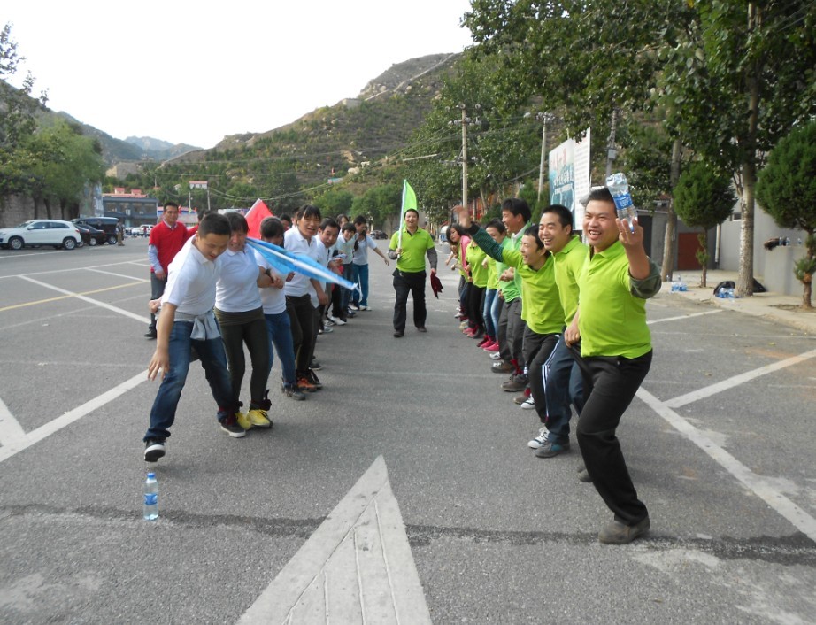“高空斷橋”則充分見證了我們每個員工的膽識和決斷能力。我們每個隊員都成功的挑戰(zhàn)了自我,客服了心理的恐懼,勇敢的站到了距離地面八米高的窄臺上,跨出了腳下的一小步,人生的一大步。最有意思的要數(shù)“超音速”了吧?三位教練把13張撲克牌毫無章法的擺在地面上,讓我們?nèi)齻€團隊依照1-13的順序全部翻出來,每人只有一次翻牌的機會,時間最短的團隊則為勝,中間不能違反游戲規(guī)則。經(jīng)過一番討論我們隊決定先派一名隊員進行市場調(diào)查,回來畫出藍圖,隊員逐個揭曉不同位置的數(shù)字,然后按照順序一一翻開......最使人難忘的是“不倒森林”、“能量傳遞”、“集體跳繩”、“動力火車”、“挑戰(zhàn)NO.1”五個項目的整體比賽,各個隊隊員都盡最大努力發(fā)揮了自己的潛能,為了不使時間一分一秒的浪費掉,有的隊員在剛比賽完成一個項目后,發(fā)現(xiàn)其他項目人手不夠,強忍著身體的不適積極參與到下一個項目的比賽中去。顧全大局、以集體利益為重的精神貫穿了整個比賽過程,每一位隊員都為自己能夠為捍衛(wèi)集體榮譽獻出一份力量而感到光榮和自豪。